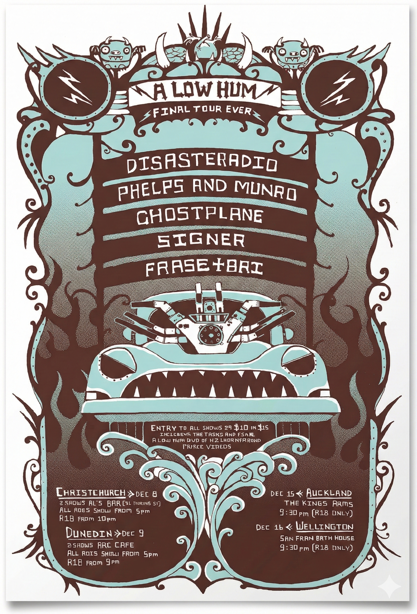 Poster from Disasteradio, Phelps and Munro, Ghostplane, Signer, Frase+Bri. A Low Hum Tour, Dec 2006.